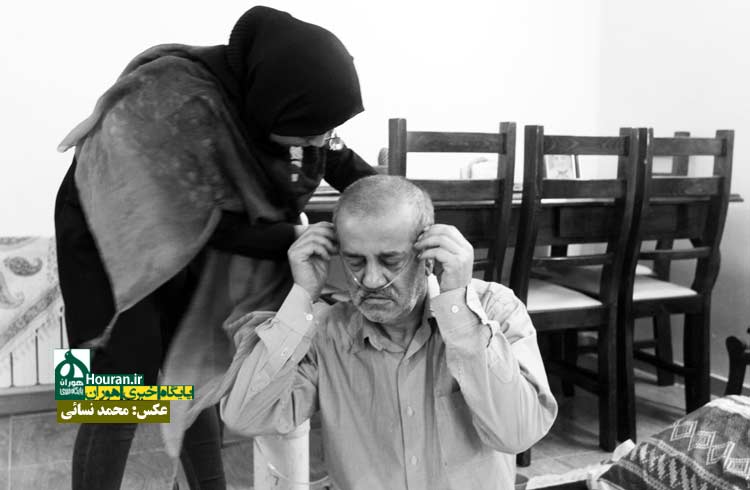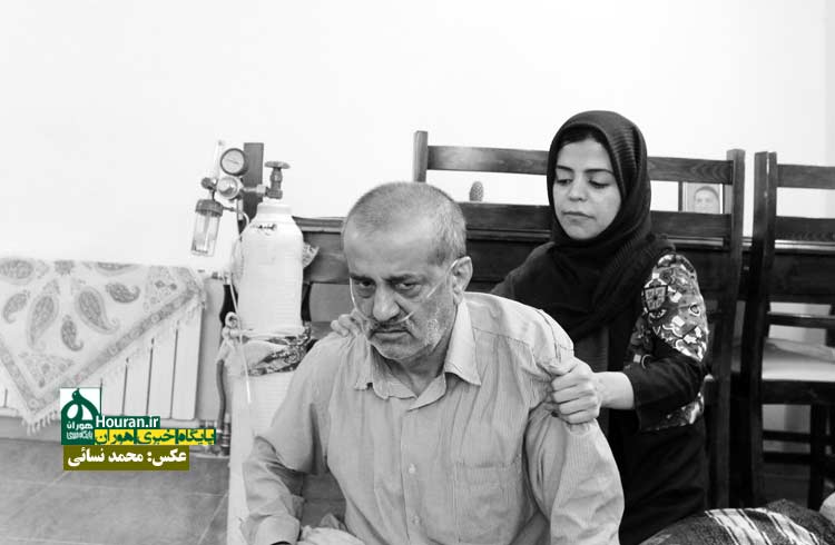 مراقبت روزانه همسر و دخترانش، ماسک اکسیژن و داروها، بخشی از زندگی آرام اما حماسی اوست؛ قهرمانی که هر روز با رنج، بار دیگر حماسه نفس کشیدن در وطن را تکرار میکند.