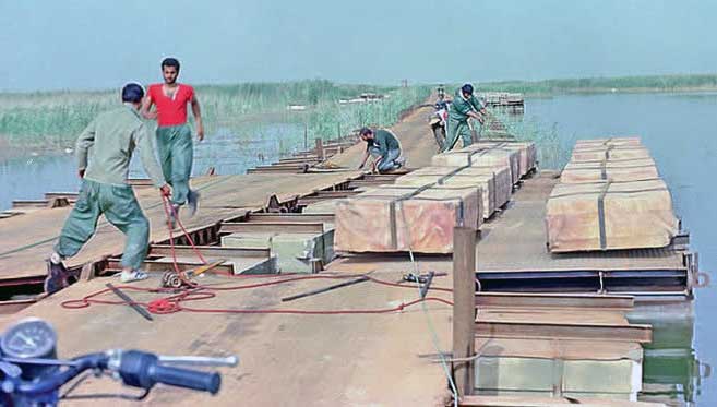 رزمندگان ایرانی در حال ساخت پل خیبر