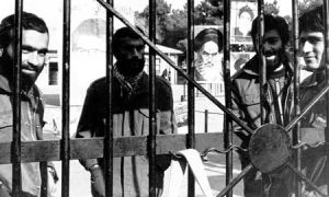 شهید وزوایی در لانه جاسوسی (نفر دوم از سمت راست)